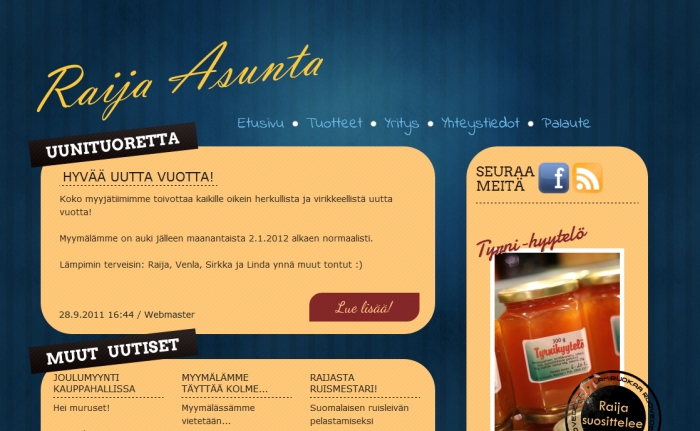 (Raijan Internet-sivuja päivitettiin ulkoasun ja tuotteiden puolesta 24.2.2014. Jos löydät sivuilta jotain kummallista, ota toki yhteyttä meihin palautelomakkeella.)